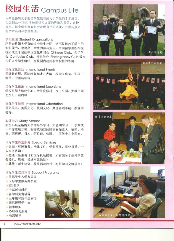 瑪斯金格母大學成立于1837年,位于美國俄亥俄州,是一所具有悠久歷史的綜合性文理大學。近年來該大學一直名列美國優(yōu)秀的中西部文理大學之列,是中國國家教育部認證的美國大學之一?,斔菇鸶衲复髮W將我校設為該大學招收國際留學生的生源基地學校,還特別為我校師生提供了非常優(yōu)越的入學條件和豐厚的獎學金,這些項目優(yōu)勢,為我校學生,特別是對來自工薪階層家庭并懷著出國夢想的同學們來說,是一個非常好的消息。
