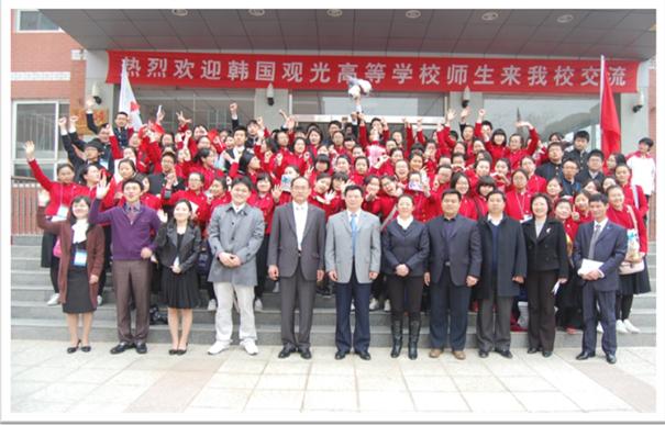 2010年4月, 我校接待了韓國觀光高等學(xué)校 97名師生交流訪問。韓國師生走進課堂,體驗了語文課、英語課和心理課;中外搭對學(xué)生一起參加中國傳統(tǒng)體育活動;兩校師生還舉辦了聯(lián)歡晚會,同學(xué)們熱情高漲,紛紛登臺獻藝。這次活動中兩校師生建立了深厚的友誼,增進了彼此之間的了解,為今后的深層次交流奠定了基礎(chǔ)。2016-09-27